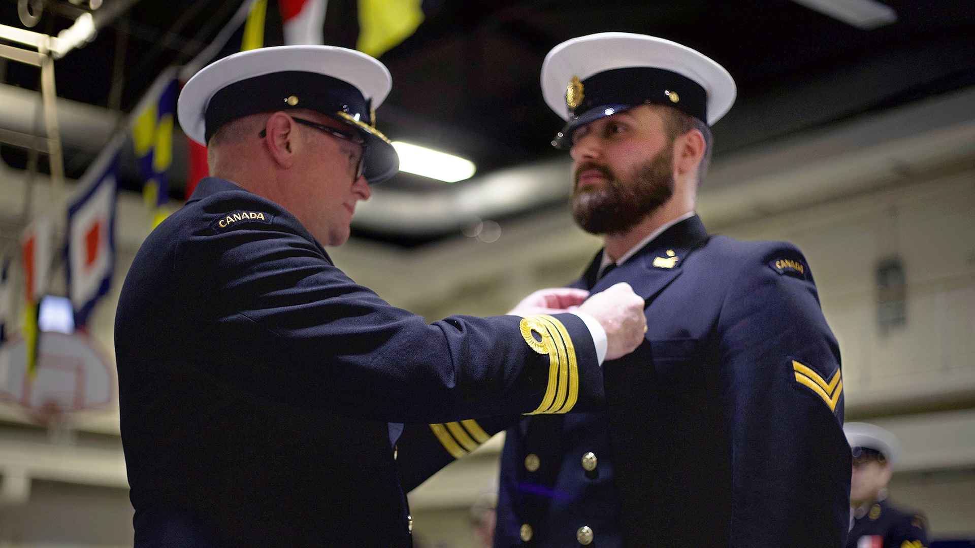 "Sailor First Class Andrew Malison is being presented with the King’s Coronation Medal for his contribution toward the Military Connected College (MCC) program at Fanshawe College as well as the diligent work he conducts as the social media manager at His Majesty’s Canadian Ship (HMCS) Prevost. Thanks to his efforts both in and out of uniform he has made a significant impact in the Ontario region and throughout Canada to inform Canadians and support the Military community."